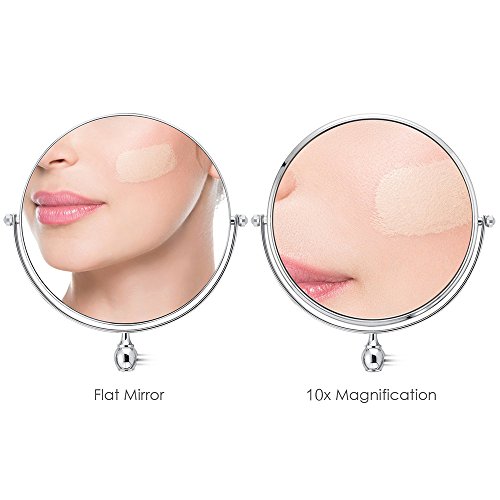 Besides, the mirror has doubles sides, one side is a standard mirror and the other side is a 10 x magnifying mirror, ideal for ladies daily makeup and gentlemen shaving.