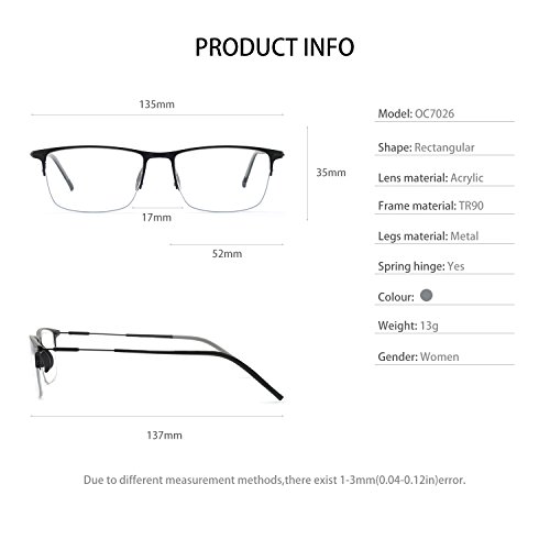 - 1.Lightweight Design(13g), Metal Spring Hinges,adult size,52-17-137(Lens Width-Bridge-Arm),Frame width:135mm,Frame height:35mm
