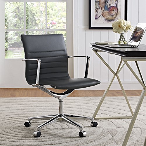-. Feature : Overall Product Dimensions: 23"L x 23"W x 34"H / Mid-century modern office chair, Padded vinyl ribbed back and seat / Polished chrome aluminum base, Five dual-wheel steel casters / 360 degree swivel, Wipe clean surface, Assembly Required