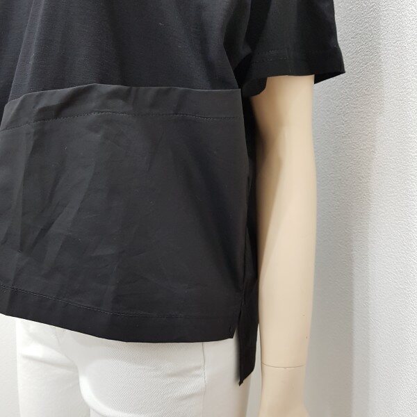 2018년 가을 신상 티셔츠로, 스프라이프에 절개 포인팅을 가미한 심플하고 모던한 디자인입니다.