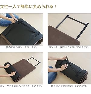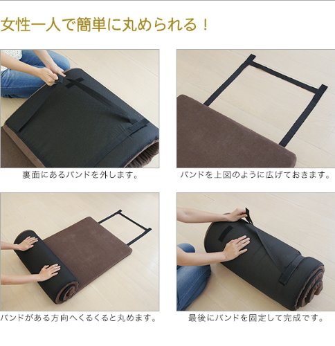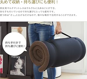 低反発マルチマットレスをクルクルっと丸めると、コンパクトサイズになるので収納時に便利!