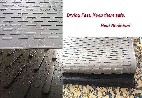 - Quick Drying Mat no more narrow ridges design. Wide ridges makes easy wiping and increases airflow for fast drying. It allows water to evaporate quickly so your dishes and cookware dry faster.