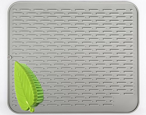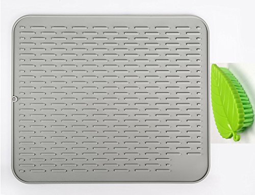 Ledsolver Large Size Silicone Holder Dish Drying Mat, with Bonus Clean Scrubby, Non-Slip (22x18 inches,Gray)