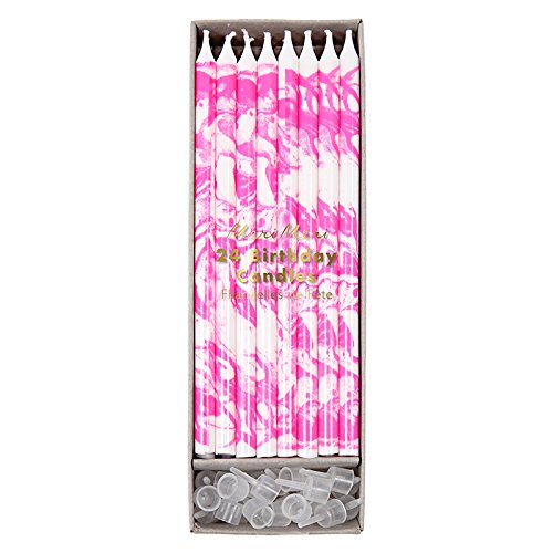 Meri Meri Birthday Candles 45-2714, Set of 24 Candles (Neon Pink Marbled)