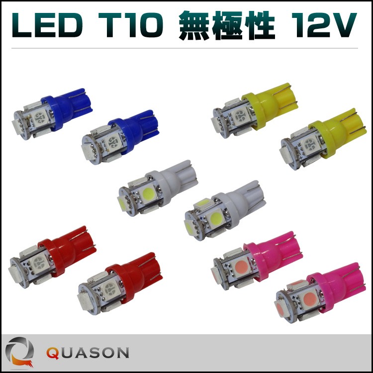 | 商品説明 | ※LED T10 2個セット 無極性 5050SMD 5発×2 ・T10サイズのLED球だから幅広い用途でご使用いただけます。 ・5050SMDチップが5面に配置されており隙間なく照射します! ・本品は純正バルブよりも消費電力が少ないため、輸入車等、車種によっては球切れ警告灯が点灯する場合があります。 ※ウインカー、サイドマーカーに使用する場合はハイフラ対策をしてください。 |