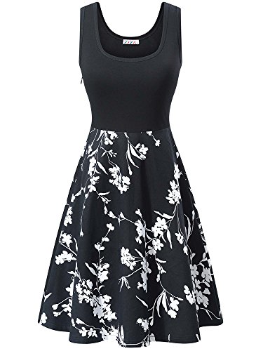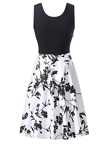 KIRA Women's Vintage Scoop Neck Midi Dress Sleeveless A-line Cocktail Party Dress