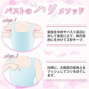 ③両手のひらを”バスト下(腹部含め)”から交互に引き上げ、腹部に逃げたバストを元の位置へ引き上げます。