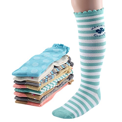 -. Title : Deer Mum Girl's Colorful Cotton Knee High Lace Top Socks(8 Pairs)