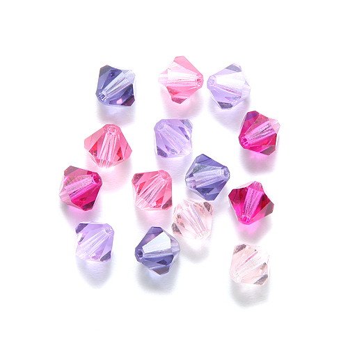 Preciosa 60-Piece Czech Crystal Bicone Beads Set, 6 by 6mm, Mix Pink Princess