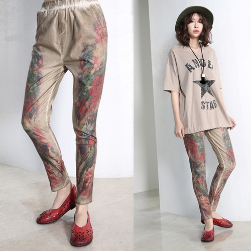 商品名:パンツ レディース 花柄 ウォッシングカラー 春 2017 モード系 個性的 40代 ファッション