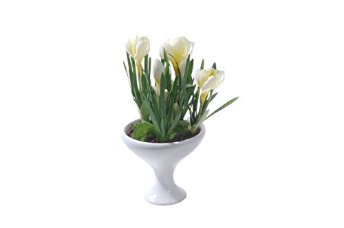 Gold Eagle USA Artificial White and Yellow Crocus Plant in Ceramic Pot, 13"