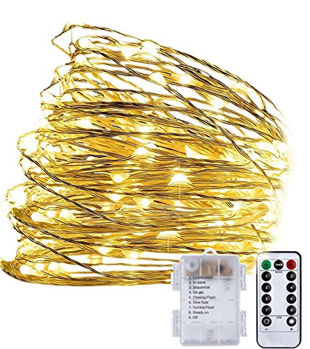 Outdoor String Lights 8 Modes 33ft 100LED Copper Wire Fairy Starry String Lights Battery Powered with Remote Control for Indoor Christmas Waterproof Lighting (warm white)