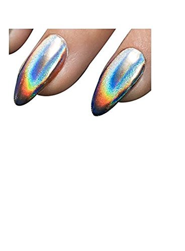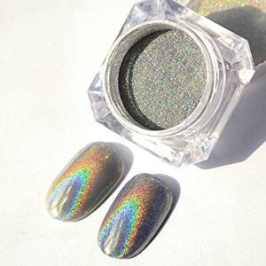 Feature : Holographic powder utilizes iridescent pigments, which reflect rainbow hues when struck by light / 100% new retail and high quality / Nail decoration easy to apply on natural or artificial nails / Application is SUPER easy. . Black is best for the full mirror effect but a color base can make it do cool things. / You need to put a bit of pressure on it in order to make sure it's burnished in really well. Brush off the excess. If the surface sparkles it means you didn't press hard enough.