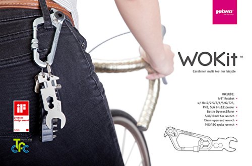 Studio : WOHO Publisher : WOHO Product Description WOHO has their customers in mind and has designed WOKit tool that allows cycling travelers faced with disassembling wheel sets, handle stems, and saddles all fit right on their belt loop. Boarding an airplane or a train with your bicycle has never been so easy. WOHO has taken advantage of the carabiner feature to make the life of the cyclist and outdoor sports enthusiasts more convenient. The patented design securely locks the wrench to the tool body, and can be easily tightened or loosened. It solves emergency situations that sports enthusiasts may be faced against. 0