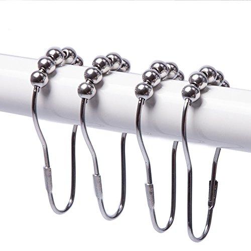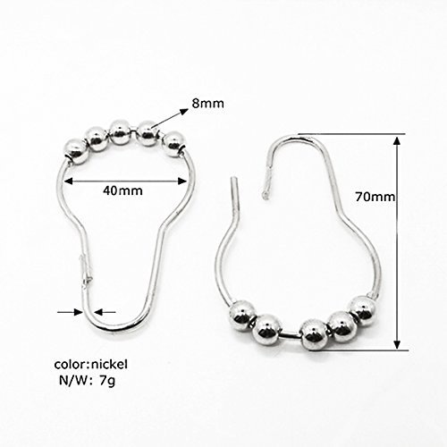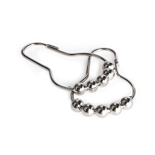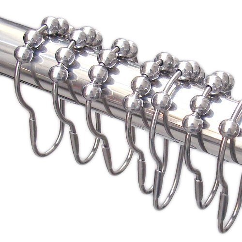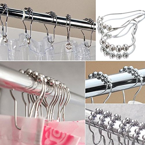 Co-link 12pcs set Nickel Polish Chrome Roller Ball Type Shower Curtain Hooks Clipperton Roller Rings Shower Curtain Rings