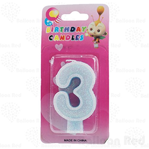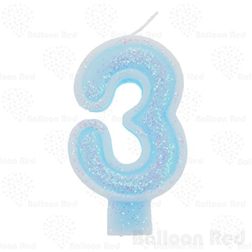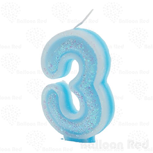 Numerals Birthday Party Cake Candle & Happy Birthday Cake Topper, Glitter Blue, Number "3", Three