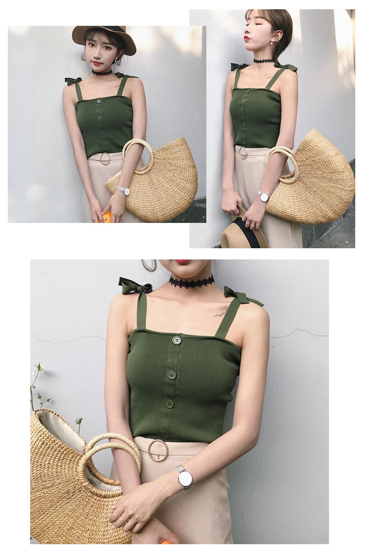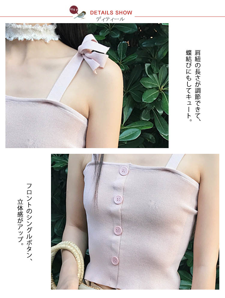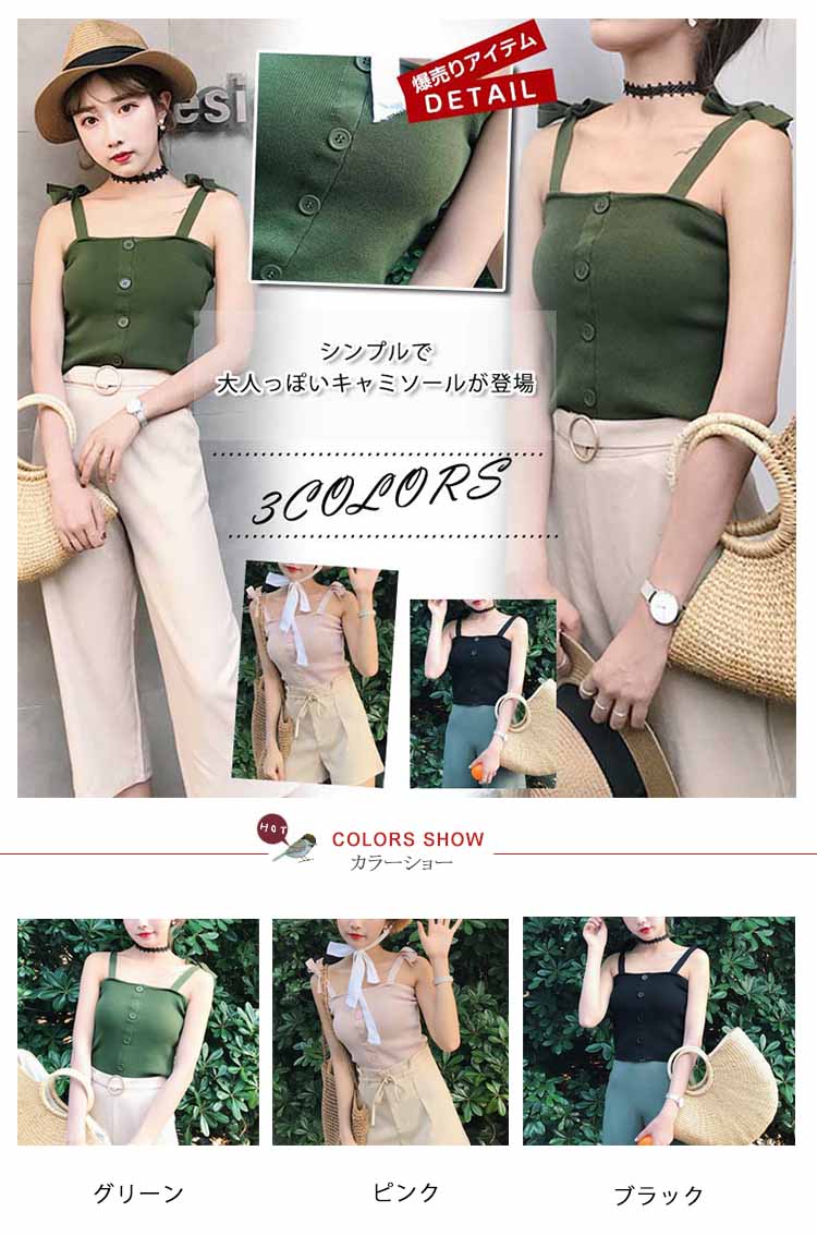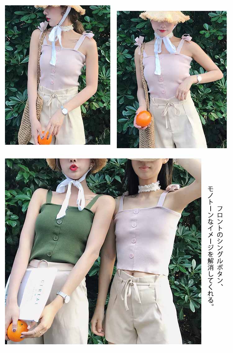| シンプルで大人っぽいキャミソールが登場広めのスクエアネックは、首を長く見せ、小顔効果も演出できる。ぴったりとしたシルエットはフェミニンなスタイルに見える。フロントのシングルボタン、モノトーンなイメージを解消してくれる。これからの季節にぴったり、旅行にも通勤にも大活躍しそう。 | |