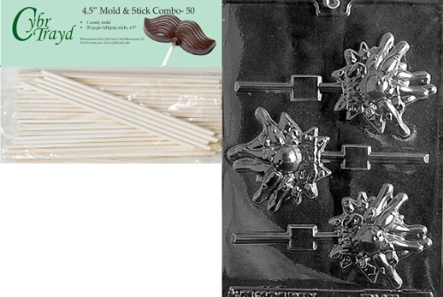 Cybrtrayd 45St50-S077 Bowling Lolly Sports Chocolate Candy Mold with 50-Pack 4.5-Inch Lollipop Sticks