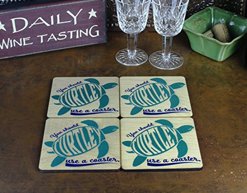 Turtle Coasters | Set of 4 | You Should Turtley Use a Coaster by Wooden Shoe Designs | UV Printed Design