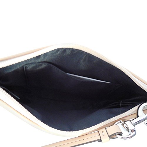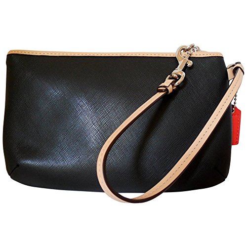 -. Brand : Coach -. Feature : Crafted of Coach's top quality, durable and easy to care for light khaki Saffiano leather with tan leather details and trim. This wristlet features Coach's iconic Horse & Carriage logo emblem printed on the front. -. ProductGroup : Shoes -. ProductTypeName : HANDBAG -. Title : Coach Horse & Carriage Saffiano Leather Wristlet, Medium