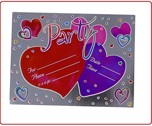 Valentine Heart Foil Invites With Envelops (Pack of 8 Cards) | Valentine Party Invitations, Birthday, Holiday Party Invitation Cards