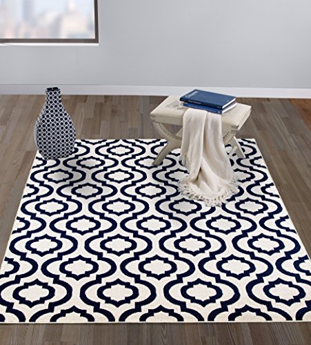 This contemporary Moroccan inspired design area rug features a power loomed polypropylene low profile pile which is durable for a long lasting quality. Inspired by traditional Moroccan patterns with today's modern designs and contemporary color's. This rug makes any home complete with style and elegance.