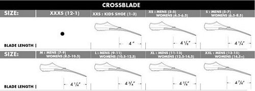 Studio : TYR Publisher : TYR Binding : Sports Product Description CrossBlade Training Fins are multi-purpose training fins designed to elevate your swim. Showcasing an intermediate blade length, the LFCROSS combines the attributes of both short and long blade fins, increasing tempo and speed while still offering resistance to build leg power and improve technique. Showcasing soft rubber foot pockets, the CrossBlade Fins conform to the foot, ensuring a secure comfortable fit swim after swim. Perfect for race-pace training, the CrossBlade?Fins allow you to maintain arm and kick tempo at higher speeds, imitating race-speeds in practice. 0