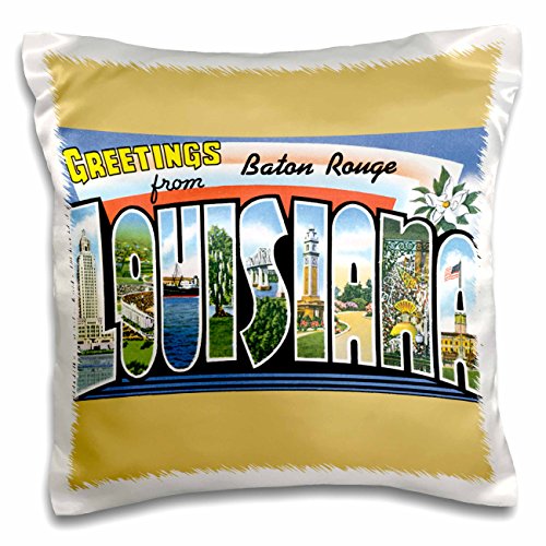 3dRose pc_170069_1 Greetings From Baton Rouge Louisiana Scenic Postcard-Pillow Case, 16 by 16"
