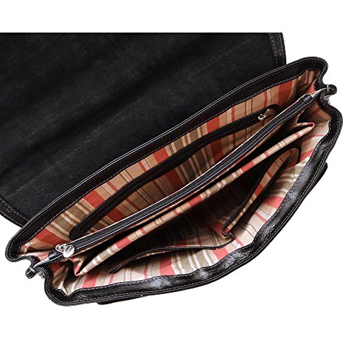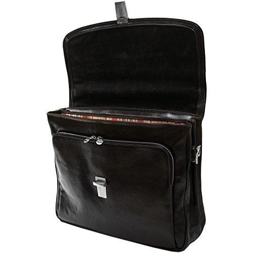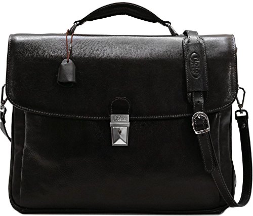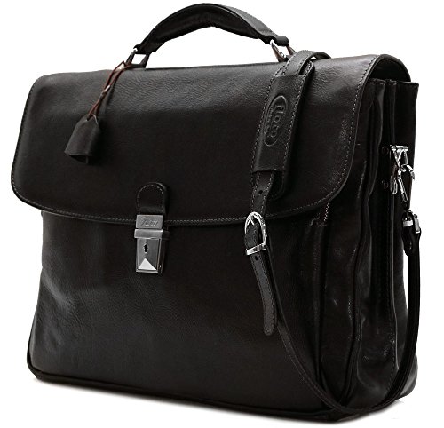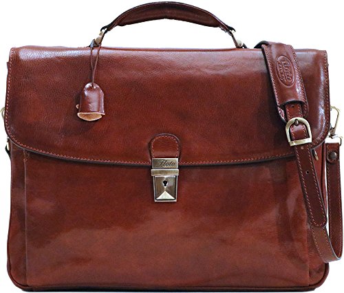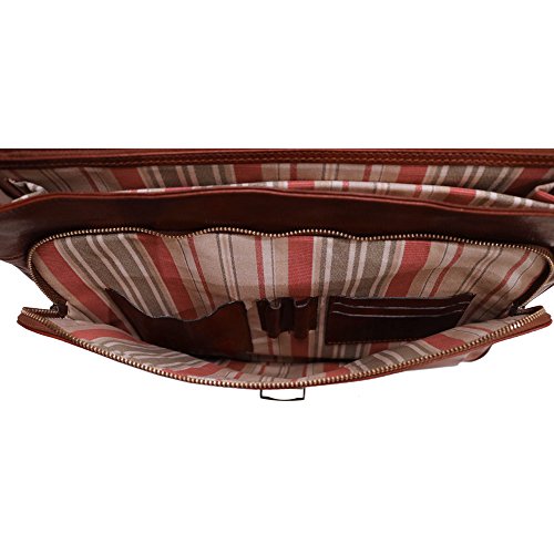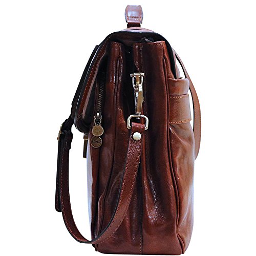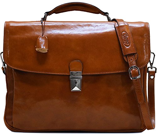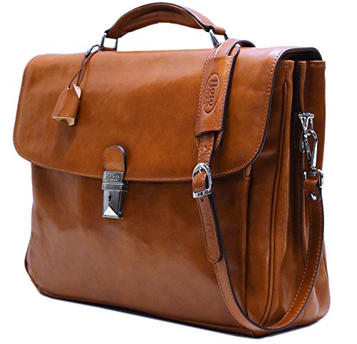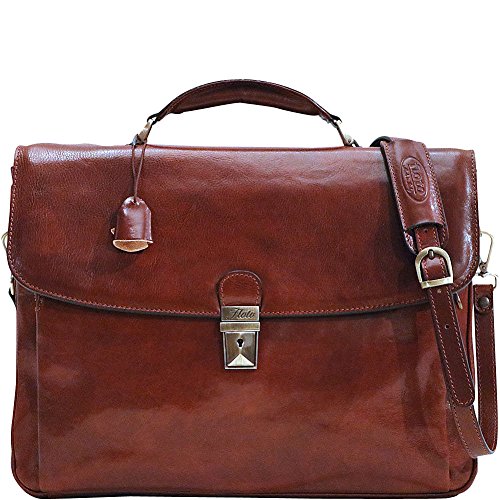 Product Description Floto Firenze Laptop Briefcase is made with full grain vegetable tanned calfskin leather and solid brass hardware. This leather was hand tanned Etruscan style in Santa Croce to soften, patina, and develop a silky touch. Only vegetable extracts and natural oils were used to create rich, vibrant color and a tender, semi-gloss finish. Firenze Laptop bag is feature rich - the inside has a 2" x 13" x 9.5" padded laptop pocket, bulky charger pocket, smartphone pocket, inside zip pocket, inside 11" x 16" zip compartment, and a 10" x 14" accessory zip pocket with leather smartphone / pen / card organizer. The back has an additional 16" x 10" zip pocket and rolling luggage strap. Made in Italy. 12" high x 5" wide x 16" long Italian Calfskin Leather Solid Brass Tuck Lock Padded Laptop Pocket (2" x 13" x 9.5") Two Multipurpose Pockets and Inside Zip Pocket Zip Compartment (11" x 16") and Accessory Zip Compartment (10" x 14") Leather Smartphone / Pen / Card Organizer Outsize Zip Pocket / Rolling Luggage Strap Detachable Shoulder Strap - adjusts to 54" Fits laptops up to 17" Weight 5.5 Pounds 0