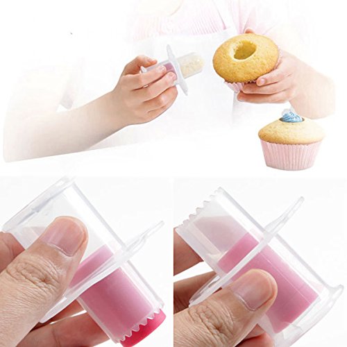 WORK QUICKLY AND SAVE TIME --- The cupcake plunger is handy to work with very quick and nice save time,created core with a filling of your loving food like jam, frosting or whipped cream.