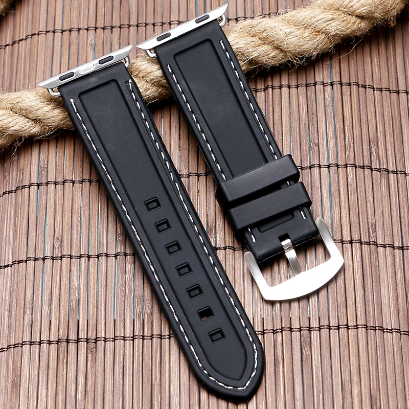| [해외]실리콘 시계 스트랩 밴드 38 미리메터 42 미리메터 대한 iwatch apple 손목 망 화이트 레드 라인 바느질 부드러운 다이버 방수 교체 |