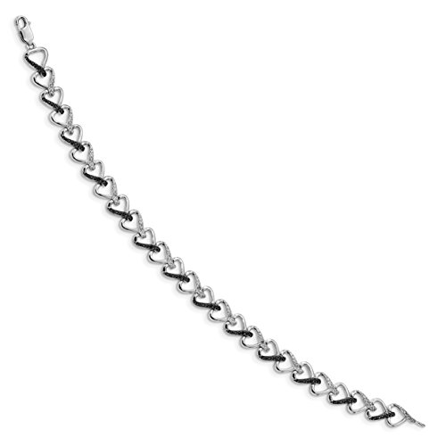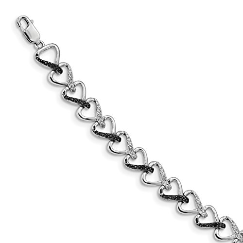 ICECARATS DESIGNER JEWELRY 925 STERLING SILVER BLACK WHITE DIAMOND BRACELET 7.5 INCH