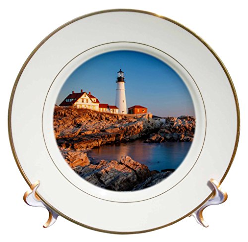 3dRose cp_207443_1 Winters Dawn at Portland Head Lighthouse Near Portland Maine USA Porcelain Plate, 8"