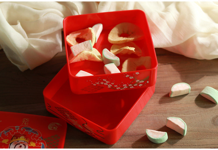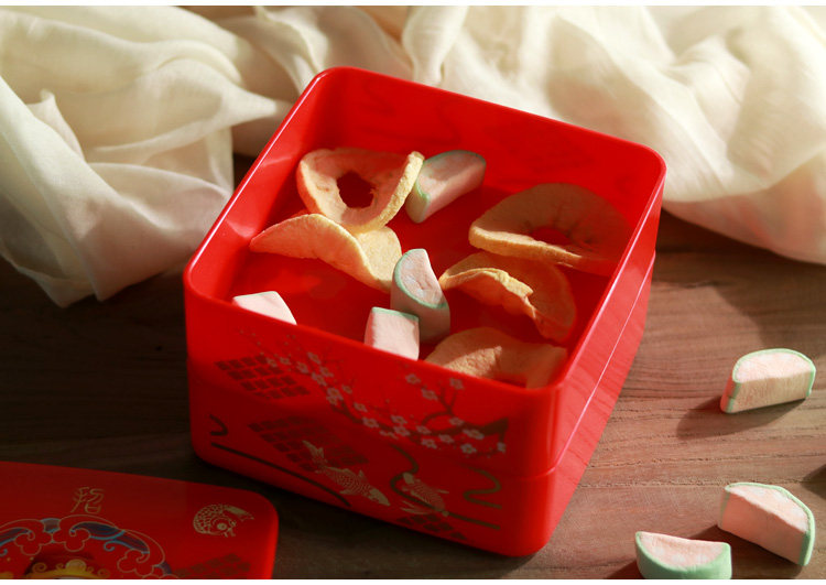 大红喜庆的颜色,新年装点糖果零食很合适哦。另外盖子之间没办法盖紧哦。