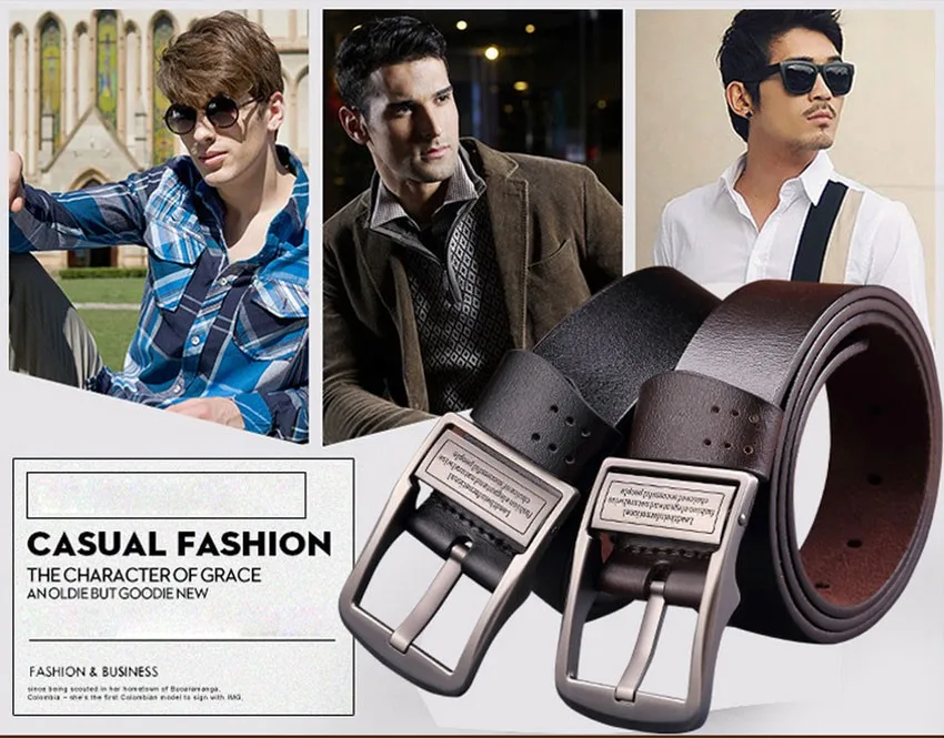High quality: solid thick leather belt men