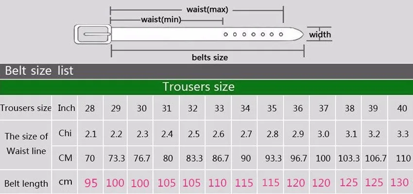 Belt Length: 110cm 115cm 120cm 125cm 130cm