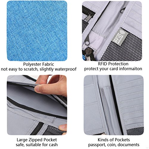 Feature 1. Storage: passport, map, travelling guide book, cash, documents, credit card, coin, ticket and so on 2. Detachable Hand Strap Design: passport document holder makes your hand free when you check in. Bring lots of convenience to you, make your journey comfortable and wonderful. Easy to carry 3. Durable, Lightweight, Washable, Stylish: it's a must-have accessory for traveling or business trip, also great for daily use. Best gift for your friends and family 4. RFID Protection: integrated RFID blocking technology guards protect your card information from electronic thieves