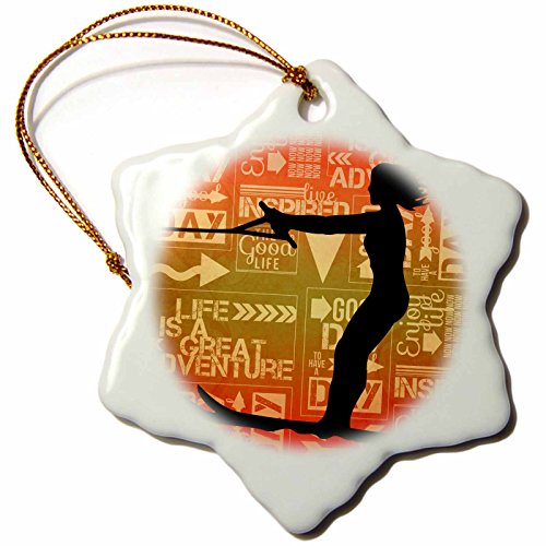 3dRose orn_173207_1 Lady Water Skier with Sunset Hues and Adventure Word Art-Snowflake Ornament, Porcelain, 3-Inch