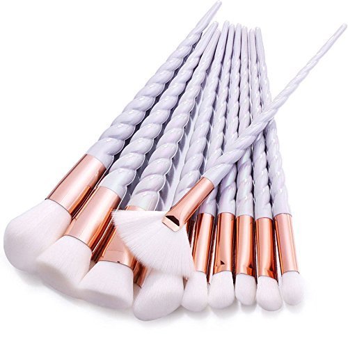 Ypres SU 10pcs Unicorn Makeup Brush Set Foundation Eyebrow Eyeliner Blusher Cosmetic Beauty Brush Unicorn Blush Brushes Kit with pink bag