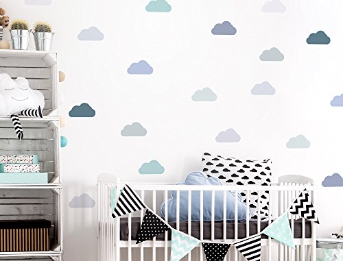 I-love-Wandtattoo WAS-10643 Wall stickers Kids "Clouds in pastel violet and pastel mint" 18 pieces, cloud sky for gluing, wall tattoo, wall stickers, stickers, wall decoration