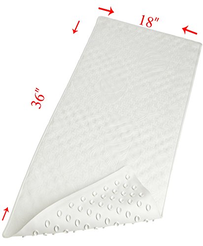 Anti-Slip Rubber Rectangle Bath Mat, Anti-Bacterial Bathtub Mat, Machine Washable 18’’ x 36’’ White