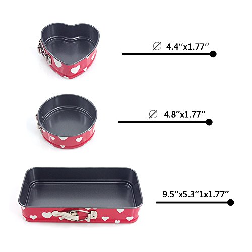 Cheesecake Pan Springform Pan Leakproof Cake Pan Bakeware Non-stick Rectangle 9 inch Round Heart Shaped 5 inch Set of 3 Pieces Valentine's Day Gift (Heart)