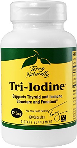 Studio : Terry Naturally Publisher : Terry Naturally Binding : Health and Beauty Product Description Tri Iodine 12.5mg by EuroPharma (Terry Naturally) 180 Capsule Tri-Iodine Dietary Supplement Supports Thyroid and Immune Structure and Function Recommendations 1 capsule daily with food. Iodine may be the most important mineral to improve overall health and well being. It is the most misunderstood mineral and recommended at a dosage that is inadequate to maintain health. Iodine helps maintain healthy thyroid function but it is also required by every cell in the body. It is particularly necessary for normal cell function especially in the breast prostate thyroid and ovaries. It has been estimated that one billion people worldwide are severely deficient in iodine. 300 million people have a goiterous condition. Iodine is a powerful support for thyroid and immune function. Many holistic physicians consider iodine to be the missing link when everything else has failed. Japanese women consume the highest level of iodine of any country in the world and have the lowest breast disorders. Iodine 0