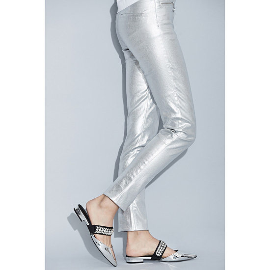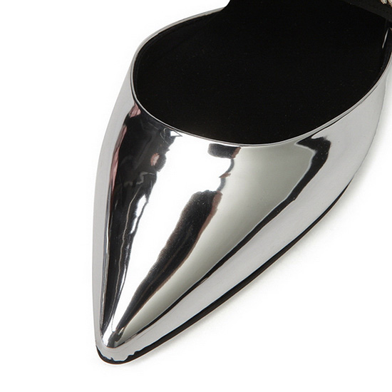 - 포인티드 토 디자인에 메탈 굽으로 세련됨.