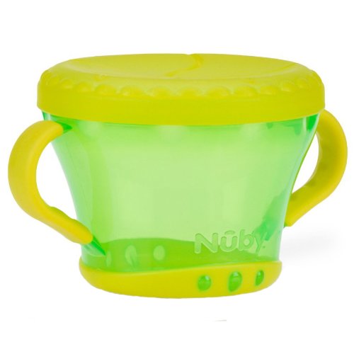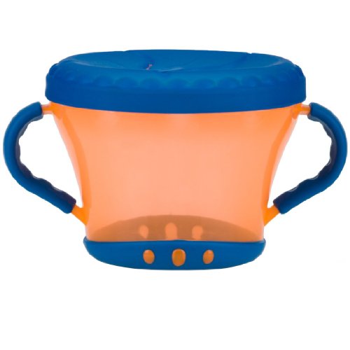 -. Feature : Super soft flaps make it easy to grab snacks without spilling / No spill, no mess, easy access / The container holds 9 ounce of dry snacks and the protective bottom keeps tabletops scratch-free / Dishwasher safe (top rack only)