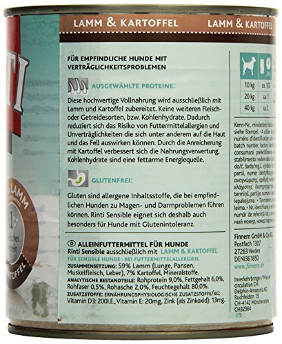 -. Title : Rinti Hundefutter Sensible Lamm & Kartoffeln 800 g, 12er Pack (12 x 800 g)
