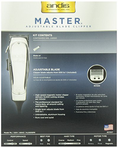 Andis Master 15-Watt Adjustable Blade Hair Clipper, Silver (01557)