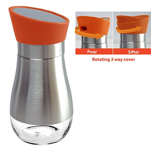 (Kuda Moda)/Kitchen Dining/Cook's Tools Gadgets/DIRECT FROM USA/Spice / Sugar / Salt / Pepper 1 Pc Shaker Stainless Steel Cover Glass Bottom With Rotating Cove...
