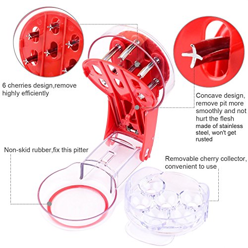 Studio : Tuopai Publisher : Tuopai Product Description Product Features: 6 Cherries Cherry Pitter Kitchen Tool Non-Skid Base Removable Pit Container Cherry / Olive Pitter Pit Cherries / Olives without Mess, Protect your Clothes from Stains Professional Cherry Stone Core Seed Remover