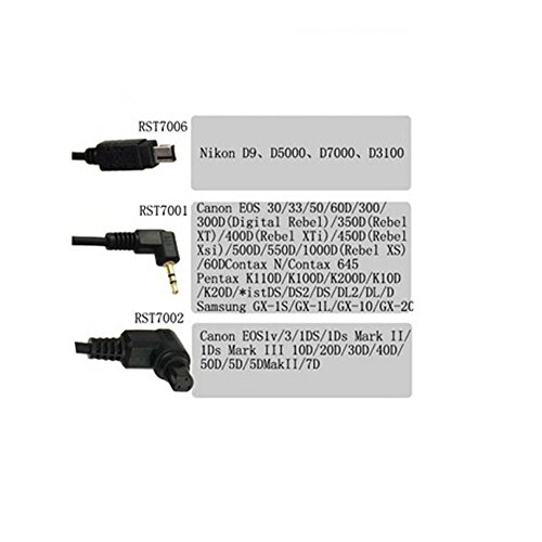 RST7001: Canon EOS 30/33/50/60D/300/300D(Digital Rebel)/350D(Rebel XT)/400D(Rebel XTi)/450D(Rebel Xsi)/500D/550D/1000D(Rebel XS)/60D Contax N/CONTAX 645/Pentax K110D/K100D/K200D/K10D/K20D/*istDS/DS2/DS/DL2/DL/D/Samsung GX-1S/GX-1L/GX-10/GX-2C